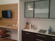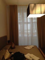 我们住了三天。含早,有wifi,但是每个房间只能连一个设备。公寓位于老城区,是当地的居民楼(看到楼梯转角平台的墙壁上贴着memo请住在这里的旅客避免过于喧闹),步行至老城广场大概只需5-10分钟。距离地铁站Staroměstská差不多也是这样的步行时间。 check in当天接待我们的是一个年轻女孩Eva,笑容满面,非常有亲和力,也非常健谈,显然她非常熟悉公寓周边的情况(因为后来我们在塞维利亚发现真有员工是一问三不知的),饭馆、卖电话卡的点、最近的百货公司,一展开地图,就能在上面一一圈出来。我们趁机拿行程表询问她的建议,讨论实施的路线,边办入住手续还能边有一搭没一搭聊天,说起一些自身的经历,原来她也到过法国看过铁塔(我跟老公最喜欢的还是巴黎)。第二天晚上我们回到公寓的时候发现暖气没在工作,给她打电话,她立刻就打的过来了,后来发现原来是因为我爸妈房间门开着,暖气跑出来了,导致走廊的温度探测器检测到温度超过23°,暖气自己停了,她后来帮我们把温度调成28°,说这样即使房门开着(公寓刚好除了我们没有其他人在住)暖气也不会停了。还有我们动身离开的那天,我爸忽然说他数码相机不见了(其实在他自己的行李箱了收好了他忘了!),我就email他们,问他们清洁人员看没看到过,check out的时候是另一个帅哥过来处理,他把原本公寓里锁住的员工用储物柜打开帮我们检查。员工们真的很尽心尽责!让人觉得很可靠。 而早餐的点也很令我们惊喜。居然是一家以自行车为主题的餐吧。