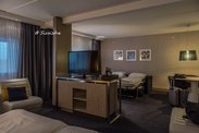 选择奥斯陆加勒穆恩丽笙布鲁机场酒店是因为它离机场仅300米,走过一个通道就可以直达旅馆的大堂,当然价格相对来说就比较高,家庭房 2700多克朗含早餐。 其实当时也比较过离机场2公里的其他同类酒店(只要1800克朗),但看到其他酒店有机场的往返班车,可大家要记得那个是要付钱的,好像是单程 75克朗 / 人,那我们四人来回往返也很不方便,而且第二天早上 LZ 七点多的航班,万一被班车的时间耽误也很得不偿失,所以就选择了离机场近些的。Check-in的时候等了20分钟,入住的人特别多,房间中规中矩,很宽敞第二天的早饭也特别丰盛,推荐一下!!!可以自己把握时间,吃完稳妥地去机场