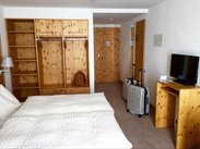一层是商品中心、游客专区,二层有2个餐厅,算下来真正能住人的客房就2层,天然造成了酒店僧多粥少超级难订的原因,从最开始的时候知道他家的时候我甚至都动过念头为了住此地,专门就订着房的时间设计行程除了我们,来到这里人数最多的是个日本老年旅游团,其他都是些散客。每间客房都是以一座山峰命名,该峰的海拔高度就是是房间号码。屋里的墙上还描绘阿尔卑斯山脉线,用山峰原石标志出你房间名字的山峰所处位置。 室外冰天雪地,室内暖和得不得了,原木装饰风格干净整洁。有专门以3100命名的巧克力欢迎。床很舒服,已经很长没有住到到这么高的位置,有点高原反应,这张舒适的大床一定程度缓解了我的不适。缺点,枕头太软,软到即使2个枕头垫一起还是一压就下去。 窗户外就是马特宏峰标志的三角山头,四面都是雪山,推开窗就是风景的格局对懒人来说是一大福音,日落日出直接打开窗子就好了,不用爬上、爬下的辛苦。 还有如果要看日出、日落就一定得住在这里