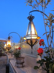 1.的确是我心目中的RIAD,高墙环绕着庭院,水流潺潺,香氛,花树,各种摩洛哥元素的摆设。 2.顶楼阳台堪称完美,各种躺椅,按摩浴缸,红花绿树。。。 可是,这地界那个吵呀...楼上的客人,楼下的行人,摩托车自行车也罢,三更半夜还有勤劳的洗衣机在转动.第二天只好狠狠地咽下双倍安眠药. 更可恶的是店主是个傲慢的法国佬,明明电邮说定两张床一个房间他也敢抵赖,好一番口舌才答应第二天额外给开个房间.话说回来,小二倒是麻利人,明亮的眼睛,随时随地能看到客人的需要,要赞一个.