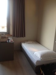 说是青年旅舍,可却有1座室内温水游泳池和1间享有佛罗伦萨360度景观的屋顶酒吧。booking上介绍从火车站走过去10分钟,但我实际上拖着行李走了20分钟,没有行李也需要15分钟。它是我一个去过的朋友介绍的,说是在房间里就能看到百花大教堂。可惜我的房间被安排在相反方向,只有走到紧急逃生楼梯才能欣赏百花大教堂的穹顶和主建筑。 虽然这家超现代酒店(booking上原话)有着无以比拟的价格及其他方面优势,但在安全方面还是要挑出骨头。酒店入住统一安排在下午14:30以后,超大的酒店容量造成大量提前到店的游客只能把行李寄放行李房,每个人都能拿着前台给的钥匙自由进出,没人看管。办理入住手续千万不能挤在14:30,意大利人的慢节奏或许让你排上1小时的队也说不定。