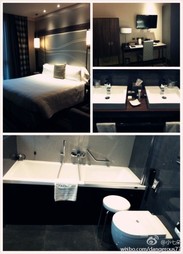 步行15分钟左右到米兰大教堂和购物区,房间很新很漂亮,洗手间是双洗手台,很干净。我们预定的时候留言说是去渡蜜月,晚上回到酒店后收到了一瓶香槟,还有经理手写的祝贺卡,非常用心,香槟也特别好喝哈哈。