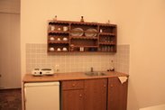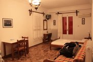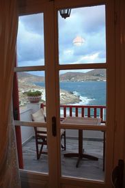帕岛强烈建议住在Naoussa,因为风景真的很好。帕岛的旅馆介绍实在不多,在网上看到的评价较好的有两家:alexandros studios Apartments和Votsalo,都位于Naoussa,其中发Email问过Alexandros 那家,说是55欧,因为之前看到攻略上说他们是50欧拿下,我便回信说我们住两天能不能50欧一天。后来居然没有下文。第一次讨价还价就以失败惨烈告终。又写信给votsalo,没有回复...后来把LP上的旅馆挨个问,看到了Katerina Studio的网站,顿时被迷住了,这就是我看江江同学的牛贴中提到的最最漂亮的旅馆!马上发email过去,60欧,但是要转账过去。我回信说转账不方便,能否提供信用卡号码,他们便说你们肯定来的话就不用了,来了再付款吧。下面仔细介绍一下这个旅馆。 房间很大,很干净,有厨房,厨房里面锅碗瓢盆刀叉酒杯、电炉、咖啡机、榨汁机、冰箱应有尽有,想要做饭完全没有问题。房间里也想的很周到,吹风机、电蚊香,阳台上专门晾衣服的架子,旁边还有一个干净的小盒子里面放着夹子。上层的房间有独立的阳台,下层的共享一个超大阳台,上面摆满了鲜花,女主人Dimitra每天早晨都会来照看她的植物。它的外观特色就是大红色的装饰了,好像在帕岛没有见过第二家。Dimitra非常爱干净,我们第二天晚上回来,发现她还帮我们收拾了房间,本以为是民宿应该不会有这种服务的。后来我去她家交房钱,她们一家三口都在,客气地请我进门,虽然他们的英语就只会那么几句话,可是还是相当热情。他们家才叫干净漂亮呢!大理石地板都能当镜子照,桌上摆的小摆件都整整齐齐,古典欧式家具都擦得一尘不染。这个女主人一定特别会过日子!海景是没的说的,Naoussa西边有山,看不到落日,但是可以看五彩斑斓的夕阳。 网站:http://www.katerinastudios.gr/ 邮箱:katkritikou@yahoo.gr