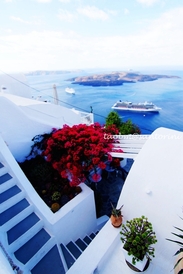 之前在booking订酒店的时候选了易莫洛林,这个号称有圣岛阳台之称的小镇入住。之因为没有选择Oia和Fira,一个太商业了,人比较多,晚上怕吵,另外一个偏贵,所以折中一点,就选了易莫洛林的。因为这个小镇地势比较高,所以可以俯瞰大海。。还可以对着火山岛。或许我没有住过更好的吧,但是这次订的旅馆也算挺满意的了。 旅馆名字叫“nefeli homes”,跟之前在穷游认识的一深圳妹纸不约而同的订了同一家,呵呵~~~在booking上有200来300个评论吧,我见评论还不错,评分也有8.9分,就果断下手了。意大利几个地方的旅馆其实我中途也兜兜转转的改了好几回,唯独是圣托里尼的这个旅馆没有改,一直挂着。 后来那位深圳妹纸告诉我,其实是可以发邮件给旅馆那边直接砍价钱订的,她后来用65欧的价格,居然可以升级了洞穴房~~~我订的时候只是订普通的房间,70欧,我见价钱也不贵,也就没有砍价的冲动了。后来很无耻的跟人家说我们是新婚的,希望要个带露台的房间,结果也就真的给了个带露台的房间给我了不过我的那个房间是不是洞穴房就不清楚了。反正感觉蛮好的. 言归正传,之前订这间酒店,唯一一个比较吸引我的是,旅馆那边是包接送的,不论你到机场还是渡口,都是包接送。这个也可以省下一笔。其他的我见很多也要收一定的费用,5欧10欧一个人不等,有些贵点的需要收到25欧,不过那些可能相对会远一点吧。 之前跟老板娘说好我们在她那边用一天的早餐,她让我们到roof garden那里等一下,会有人帮我们端过来。其实希腊式的早餐,不外乎那几样东西,橙汁、酸奶、芝士、火腿、炒蛋、烤面包。 希腊的酸奶看着好像芝士一样的,没有什么味道。酸酸的,一点甜味都没有。之前在雅典机场就买了一杯来吃,觉得不好吃,吃几口就吃不下去了。到今天我才知道,希腊酸奶配蜂蜜那才是一绝,蜂蜜的甜度刚好中和酸奶的酸味,拌着蜂蜜的香味,混合酸奶的奶味,那味道真是一流的。以后亲们到圣托里尼吃酸奶,一定要倒多多的蜂蜜进去~~~~那叫一个爽!!!