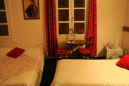 booking上预订,共住宿两晚,6.15和6.19,当中三天要将行李寄存在旅馆,出发前邮件沟通好的。但现场,男主人不肯,说没人看,我们说邮件沟通过的,硬要我们翻邮件给他看,看到邮件后,没有声音了,说可能是他妻子同意的,所以最终还是同意给我们寄存了,其实寄存就是楼梯下的一个小的休息室,敞开式,只有外面的旅店门,前台有人的时候敞开,没人的时候会锁住,都是密码锁,只有住客知道。 房间小,但是还算布局合理,不显得局促,小桌上放的是鲜花,很浪漫。