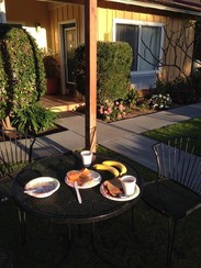 我们在圣巴巴拉住的旅馆,有花园、有泳池、还有免费早餐。外国人的身体素质真不一般,晚上真的是很冷,可还是会有在游泳的姑娘,早餐话说是欧陆式的热早餐,美国的热早餐基本都一个样,热咖啡、烤面包、黄油、果酱,好一点的地方会有水果、酸奶、牛肉饼以及自己动手做的华夫饼,有华夫饼的地方我都只吃它,所有东西里最好吃!牛肉饼至少100刀以上的旅馆才会提供,在我这儿是这样,希望你能订到便宜又有牛肉饼吃的地方。。
