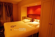 房间不大,2个行李摆下去,差不多就没空间了,而且他的灯光是像要营造欧洲宫廷的气氛,不是很明亮,有气氛。但浴室的设备更好,都有清洁用品,是小罐装,可带回。一般2星级的饭店几乎只提供大罐的洗发乳及沐浴乳,其它几乎不提供,像在亚维侬的饭店提供的是很像试用包呢!Queen Mary的早餐很不错,,吃顿美好的早餐是一天活力的来源,心情更愉悦。