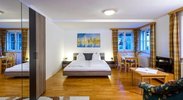 酒店位于萨尔茨堡附近的一座山上,从老城区出发约摸开了20公里,路上已经经过了好几个小村庄了。一路越开越远,按照导航提示的在某座山间小道上看到迷你的路名标示,顺着路标上山,蜿蜒程度更胜之前的国王湖,有一种住在双龙洞顶上的感觉。这家高山旅馆像是开在了精灵们的森林深处,踪迹难寻,非常神秘。就在我们进退两难的时候,终于在海拔1000米的高山上看到了房子。好在停的车还不少,露天餐厅也坐满了人,总算打消了我们害怕遇上“黑店”的疑虑。典型的欧式乡村小楼,木制结构的窗口门廊,围着篱笆的露天餐厅,四处种满了鲜艳灿烂的花。我们进去后问哪里check in,连个前台都没有,厨房里忙活的小哥,也就是老板本人连忙出来给我们办理入住。交给我们房间钥匙后,还告知明天要九点后这里才会有工作人员,索性就先把账结了。看来这里才是名副其实的民宿呀。 房间非常大,连进门玄关都单独设成了一个小房间。最难得的是房间里还有一个简易厨房,若是带足食材还可以自己动手烹饪一番。酒店旁边就是一片原始森林,不知道会不会顽皮的小动物跑出来溜达。山顶的空气非常清新,确实可以眺望到萨尔茨堡的夜景全貌。高山旅馆的特点就是,绝对的安静,尤其是夜晚,黑暗就像清冷的缝一样,时时处处围绕着你,唯有星空格外明亮,点点繁星,仿佛黑丝绒上的碎钻,也预示着明天会是个好天气。 远离城市的热闹繁华,来到这片伸手可触碰到天的广袤无垠的静谧里,也算是此行难得的体验。