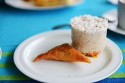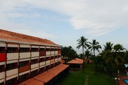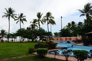 酒店楼下的花园里有不少人在整理草坪,修剪树枝,旁边的餐厅还没什么人吃早饭,远处的海水浪花卷起一朵朵拍向岸边...... 酒店早饭的构成很简单,西餐、水果和咖喱,还有用椰子做的米饭,最喜欢的还是咖喱角,味道实在不错