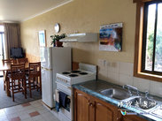 Bicheno's Ocean View Retreat,离开镇中心大概4公里,是一个坐落在半山腰的公寓。我们是通过booking.com预定的,一晚大概190澳元,加上多用了一个儿童床位,一共支付220元。