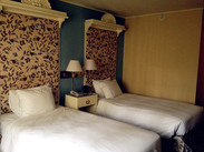 澳门丽景湾酒店 价格:643RMB 这家酒店在氹仔岛上,本来想定表妹学校附近,无奈边上都是赌场酒店贵的要死,所以选了这家,过个桥就到市区,交通还可以,而且酒店有车在码头接送,我们从香港坐轮渡到澳门就坐酒店的班车的,车子有点小,停在很旁边比较难找,建议住他们家先跟前台确认下车牌和发车时间。酒店外观有点旧,但是内部装饰很特别,小百叶窗和蓝色地中海风格的,好漂亮哎~