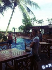在考山路附近,下车便有人帮你把行李送到房间,我们在前台办理入住手续,有服务人员会简单的中文,有游泳池,游泳池边上有小吧台晚上还有驻唱歌手,外国人居住较多。我们定的是三居室 所有有客厅 里面冰箱什么都有,大卧室有独立的洗浴间,中房间是两张床 小房间是一张床,整个房间可以住六个人。 酒店隔壁就是成衣中心,也就是我们说的衣服批发市场,价格都很便宜。