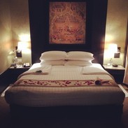 话说去泰国玩有很大一个吸引力就是物价低,曼谷悦榕庄的房价基本上是国内的一半了,而且曼谷的悦榕庄顶楼是亚太地区最高的露天餐厅和酒吧。我订酒店的时候备注了我们是蜜月游,所以酒店还特地给我们安排了铺满玫瑰花瓣的床和一瓶红酒,搞的我怪不好意思的,看来以后出游一定要很恩爱的告诉每个酒店,我们是蜜月哦。刚到酒店下车的时候门童还送上了带有吉祥寓意的花环套在我们手上,到达酒店已经快12点了,坐在48楼的房间里,手环的茉莉花香阵阵飘来,看着曼谷星星点点的夜景,心里大喊一句:曼谷,我又来了哦~~~