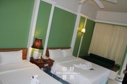 房间比较大;前台贴心安排我们两对母子相连的房间,一间是5尺大床加3尺小床,一间是6尺大床,中间的门可以开;卫生间里面有淋浴和浴缸两种设施,我们只用了淋浴,提供的淋浴用品有:淋浴露、洗发水、护发素、润肤露、精油皂(这个蛮赞)等,每天都提供,没有用完带回家,有大大一包;房间打扫得很干净。 店3楼以上的房间可以远观海景;酒店是小巧的、精品的,相当国内4星左右,但环境优美、设施齐全、服务温馨、干净整洁是国内的4星酒店没法比的;