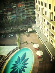 入住河内铂尔曼酒店pullman,5星标准,放在国内大概3星水平,临街的房间有露台,可以看到街景。回到Pullman住9层,能俯瞰2层泳池,越南之行的最后一晚
