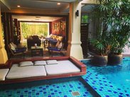 门脸很小,但是里面很大,有2个不小的泳池,多家餐厅,说九转十八弯有点夸张,不过确实蛮有玄机。第一晚入住的 Classic room,第二晚最便宜的这种被订光了,换的至尊房,很值得。有2个阳台,阳台边有休闲椅,一张足有3米宽的床,寝具很舒服。Burasari很人性化的一点,冰箱里每天有4罐饮料、2罐啤酒,1包奥利奥,一包薯片是For Free的!唯一的不满,洁具似乎有些年头了,资金允许就换换吧。Burasari去海边很方便,走出去便是了