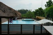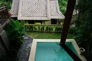 酒店位置很难找,不过里面的服务还不错,早餐只有炒饭和炒面,设施都很旧,墙上有壁虎在漫步,都是独栋的小别墅,我们住的是两室一厅的,有室外的淋浴却又遮的很到位,就是房间都很旧。酒店游泳池,不大。
