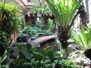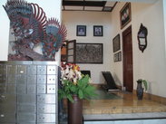 位于日惹城里繁华的Jalan Prawirotaman I 旅游区,只在公共区域才有免费WIFI,我们订的1 Double AC + 1 extra bed:Rp.450.000 + Rp.150.000 = Rp.600.000/night 含早含税. 这家旅舍在日惹共有3 处,网址:http://www.dutagardenhotel.com/ ,其中网上很多前辈推荐的是Duta Garden Hotel, 我们住的则是Duta Guest House(我们订晚了-Duta Garden已没房了,因为它只有12间客房的)。Duta Guest house房间很简朴,但是真的很喜欢这里的环境:干净清幽的院子+ 一漂亮的小游泳池:在印尼,印象最深的就是即便是这些家庭式的小旅舍也能有这么别致迷人的游泳池。正所谓山不在高,水不在深,池也不在大呢: