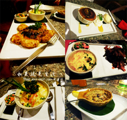 优势:极高的性价比 - 69美元/晚。屋顶泳池+露台,1F花园内有药草桑拿,房间里冰箱【两门的那种】、煤气灶、油烟机、小餐桌、化妆桌一应俱全,堪比一间小公寓。且环境优美适合长住。 劣势:开在深山老林的里。要到马路边车子都要开几分钟。酒店略小。屋顶泳池虽然浪漫,但一不小心我就看成了喷水池。 就带你晚饭还是很划算的,虽然明显符合老外的口味,泰式本土口味甚少。可以看到,都是起司,土豆神马的。同样是欧美人的大厨不时出来跟外国友人撇撇情操,颇有老乡见老乡的意味。