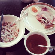 住在Rembrandt Hotel,俯瞰窗外夜景,房间虽小,细节却做的很好。酒店的沐浴产品都是资生堂的,很好用,味道也很好闻。早上起来吃自助早餐,内容非常丰富,可惜偶就吃了一点,图上的海鲜汤很不错,牛奶很纯正。