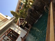 暹粒的景区有很多酒店,我们入住的叫Royal Crown Hotel & Spa。关于这个酒店,是这样的:不同于越南的高档酒店,我们考虑到,基本上白天都是要去吴哥窟的,酒店只是晚上回去睡个觉而已,所以就没有定太好的豪华酒店。这家酒店折合人民币450元左右一个晚上。酒店泳池也有亮点,有一个淡水池一个咸水池。咸水池还有3个大象雕塑,往下喷水,很不错。 酒店的房间还算干净,但是卫生间有点让我受不了。毛巾是发黄发黑的,洗漱用品都是很差的那种。冲澡的莲蓬头,水温不稳定,经常把我烫个半死。如果这些你觉得OK,那这个酒店还是很值得推荐的,毕竟便宜嘛。地理位置也很好,对面就是超市,步行就到老市场。酒吧街走走15分钟,叫tuk tuk2美金。 酒店还有安排接机,后来我才知道,接机其实是酒店和tuk tuk司机的协议。接机免费,但是tuk tuk司机会希望你能包他的车游吴哥,但不是强制的。有些网友会在出发前就联系好司机,那就不需要了。我是个很随性的懒人,出发前本来就没找过司机,打算当地随便找一个的,正好就和接机的师傅谈起了价格。我们一共2.5天,不早起看日出,中午也不回酒店午睡,协商下来的价格是47美金。最后我还是给了他50美金,因为他最后一天也送我们去机场了。当地人其实赚点钱也不容易。所以,我的重点是,不用急着在国内就联系司机,不妨找个安排接机的酒店,然后跟接机的师傅协商包车,很方便。