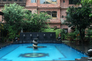 咬牙选择最后一晚住在这里还是非常明智的决定。这几乎是尼泊尔现在最好的酒店。一声轻柔的“Namaste”唤回了我的思绪,这是Dwarika酒店欢迎每一位客人的方式。巨大的铜制房间钥匙,与之相配的是房门上巨大的铜挂锁,没有一般高级酒店的现代化磁条门卡,与它古老的建筑风格配合得恰到好处。 房间的宽敞程度也许是世界上所有五星级酒店之最。客房建筑是传统的NEWARI(尼瓦尔)风格,一切都按照先人的工艺制成。内部装饰来源于尼泊尔各民族的传统文化。“古建筑中窗的数量通常是一、三、五,现在也完全照此规矩去做。过去的门窗都比现在的尺寸小,而且完全不使用钉子,我们也严格按照过去的尺寸做。 每间客房的形状、布局、家具、装饰、摆设各不相同。许多房间的正中央被一张巨大的木床占据着,米色的床单绣有红黑相间的图案,与四周未经修饰的红色砖墙和地面上的陶土地砖色彩搭配得非常和谐;木质的镂空灯在天花板上勾画出奇异的线条。值得一提的是,和尼泊尔大部分酒店一样,Dwarika酒店除了香皂和浴巾外,不提供任何一次性用品,因此去尼泊尔旅游一定记得带上洗漱用品,哪怕是住五星级酒店。香皂的包装纸和房间内的便签纸也都是纯手工制作,化学制品在这里极少见到。