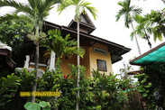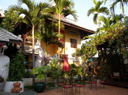 这家guest house应该是小有名气,我们后三天住在这里发现坐tuktuk或双条和司机讲Takham大都知道地方。旅馆在古城南面,并不在古城里,但不远。离Saturday market 是有几分钟步行的路程。价格:舒适大床房170RMB一日(含早餐) 优点:交通便利,出门就可打到tuktuk。一日游的information很多,直接在前台就可以预约,每天清早会有各种一日游或者jungle fight的巴士来门前庭院接游客。所以说如果是准备游古城或者逛夜市亦或是一日游的日子住在这里都很方便。服务周到,前台的姑娘不仅美貌而且英文流利。免费赠送的早餐更是惊喜,而且早餐服务的男生灰常娘且可爱,娘到和他讲话自己也会不自觉的捏细嗓子,每早txtx他顿觉一身轻松。 缺点:虽说有精致的庭院,而且建筑风格很泰式,但房间条件相对来说一般。当然比国内的如家类快捷酒店还是要好很多,我们只是被第一家的套房惯坏了。无电梯,住在3楼的话就只好麻烦服务生帮你扛行李了,当然,给些小费比较礼貌。