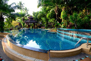 大概5点上岛,上岛后,租了个商务车,包车600B,真心觉得被宰了,他骗我们,说我们的酒店很远,其实苏梅岛才点点大,能远到哪里去嘛,算了,初来乍到的,开车不要15分钟就到了,我们岛上第一家酒店西林精品度假村(Searine Samui Boutique Resort) ,在拉迈海滩,不错,过了马路就能走到拉迈海滩。我们三家的房间挨着一起,从阳台上放眼望去,一片绿