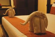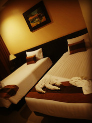 价格:750B/天(含双早,含免费机场接送) 预定方式:www.sawasdee.com。 实际上这是一次非常不愉快的住宿经历,从出机场找到Thong Ta接机的工作人员都非常顺利。但是在我们Check In的时候,酒店的前台拿出一份说明书,粗略看了一下意思是马桶坏了之类,要为我们安排换到他们的姐妹酒店去。但是除我们以外,其余和我们一同Check In的人都顺利入住了,很明显,酒店不过是为overbook找的借口,我不得不感叹我的RP。被换的酒店条件自然非常差,国内招待所水平的GH,好在只不过睡几个小时就要出发了。