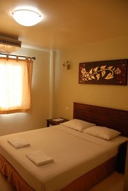 我们在曼谷住在了考山路附近的RAMBUTTRI,在论坛里看见有童鞋推荐就定了这家。整体还行,房间挺小,但也算是五脏俱全吧,还有保险箱,电视是象学校餐厅一样吊起来的,没有烧水壶,每天提供两瓶纯净水。床很小,1.5米吧,晚上我们三个挤的呀~~~ 我们当时定的价格是180左右吧,么有早餐。看见有老外WALK IN ,问价格的时候偷听了一下,才650B啊,不是旺季的话可以选择WALK IN呀,便宜不少呢。 这家酒店的周边算是很便利的了,离考山路步行2分钟,酒店门口的街道上有两家7-11,好几家兑换点,数家马杀鸡,餐厅酒吧也有好几家,小摊无数。