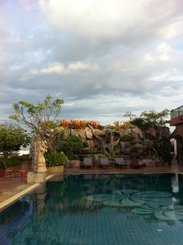 我们是找的旅行社统一解决机票和住宿,3650元/人,重庆直飞,4晚FURAMA,按照agoda上FURAMA的报价(300元/晚左右),机票费用应该是在2400元来回,不算便宜,但集体出行(一共50人),胜在方便。 FURAMA在古城西北面,乘坐双条车到古城不到10分钟,距离宁曼路和CENTER WORLD、千人火锅都满近的,酒店环境还好,但稍显古旧,我住过吉隆坡的FURAMA,比清迈的要好一些。清迈有很多便宜又有调性的酒店,自己出行的话,不推荐FURAMA。 FURAMA在清迈的云云众酒店中,只能算上一般,但能俯瞰大半个清迈城和有清澈游泳池的屋顶还是带给了我们非常快乐的时光。我是在抵达清迈的第二天下午,趁着去夜间动物园之前的空隙上了酒店楼顶,看到绿绿的远山围绕着这个城市,远处还闪着金色的阳光,在那一刻爱上了清迈。 至于泳池么,清早起床游一圈再去吃早餐,会让一天的开始就很完美~FURAMA在一条小巷中,出巷口对街就有711,711门口有一片夜排档,在清迈的几天中,我们同行的同事每天都是以逛711吃夜排档结束的。