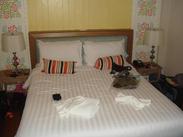 当初之所以选了这间饭店,主要是因为他离BTS站很近,加上周遭又有很多东西可以吃,所以我们选择了这家很有法式风情的曼谷精品饭店。对于住习惯大饭店然后这次想要尝试精品饭店的人来说,在找这间饭店的同时可能会让你有点失望,因为饭店并不是位在大马路旁,而是位在巷子里的巷子里,从外面进来最多只能看得到小小的招牌,请出租车载你的话,司机都相当有可能会不知道在哪边或者是找不到路。 这间饭店算是比较迷你的法式风情酒店,饭店现在分成两栋,一栋是LOBBY,另一栋是跟餐厅一起的,运气好的话可以住到有小阳台的房间唷(这也是我们当初之所以选这间的另一个原因)。整栋楼只有三层,电梯是比较小型的。坐上电梯到达住宿的楼层,电梯打开后饭店给人很温馨的感觉。打开房门后发现房间布置相当精致,床头的墙壁上也是布置的很漂亮,放眼望去真的觉得相当舒服。浴室也是走一个colorful路线户外有一个游泳池,在这边晒晒太阳应该也是很不错的。 吃早餐的地方说真的,曼谷很热,所以我想除了欧美人士之外,应该鲜少会有人想坐在户外边流汗边吃东西。早餐部分还算是精致与丰盛,早上可以先在这边吃一点填肚子,毕竟外面还有更多东西在等你去享用。饭店提供的嘟嘟车,可以载你到附近的地方或者是BTS站,阿记得要给司机小费嘿,这是一个小费的王国。 其实这间饭店的性价比还算很高,不是那种很高档的,但也不是很烂的,装潢很漂亮,服务相当好,不过床单有破洞跟我朋友的房间浴室灯不亮这点让我觉得有一点扯,但是依他的价钱跟其它的优点来说,这些小缺点还算是可以容忍的,OK啦,我还是要给予这间饭店一个好的评价,推荐推荐。