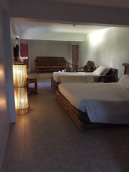 这家酒店是我这次选择入住的酒店,性价比在一号码头的酒店中属于比较高的,而且位于station1的中心区域,沿沙滩步行到圣母岩礁只用10-15分钟,酒店也有免费班车到Dmall,很方便。酒店风格很有当地风情,茅草屋建筑,房间非常大,我一个人住相当浪费。房间阳台都是面海的,所以view都还不错。酒店的staff们也很热情,见到你都会很热情的打招呼,知道我是一个人来的时候无一例外都露出了很惊讶的表情,有位staff还很热心的告诉我酒店的入住名单上只有我是单独入住的。酒店唯一不太理想的是早餐,早餐是自助加点餐,品类不是很多,口味也很一般。不得不说有被房间的面积惊喜到,整个房间大概有五六十平米大,非常宽敞干净。staff也布置的很用心,床上摆满的鲜花,浴缸也是放好水撒满花瓣。不禁感叹对于单身狗的我来说,实在是太太太浪费了。