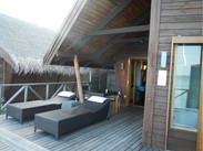 水飞到达LUX码头,工作人员在码头等候迎接,有个香港人和马来西亚妹妹会说中文。这边的水比伊瑚鲁更蓝,也有可能是天气的缘故。总之,在预先感受了马代2个美丽的岛屿之后,抵达LUX的这一刻还是给了我们很多惊喜和小小的激动。LUX是马代为数不多的几个保持原始特色的岛屿。前台门口的这个可爱的红色电话亭可以免费打国际长途,这是LUX系列酒店的特点,在毛里求斯的也有这样的电话亭。 我们的房间就在这里,很有特点的斜顶外挑房檐,每栋别墅置身于大海的中央,小朋友很兴奋。房间内洗漱、淋浴、浴缸、马桶都是分别独立的区域,连通外面的露台 。床很大,喜欢这个浪漫的白色帷帐,只是设施、床品感觉有点旧。卧室外面有个很大的面海露台,浴室也是玻璃透明的,窗户推开就直接面朝大海,可以直接纵身入水。露台上有楼梯直接下到海里,东边水上屋的外侧是一圈巨大的防浪提,所以靠近房间的水面很平静,非常适合游泳、浮潜。 我们四天的餐基本都在Kitchen和East,Allegria餐厅用餐,记不得是星期几East餐厅是海鲜主题自助餐,非常好吃,Allegria餐厅是点菜,除了慢以外,服务口味都一流,有个羊排很不错。 9月29日是离开LUX的日子,回昆明的航班是晚上,本打算上午到马累,去首都逛逛,头天就和前台工作人员说好的,但当天还是没有为我们安排上午的飞机,这也是让我对LUX很不满意的一点,经过协商在我的水屋退房后,安排了一间沙滩屋给我们休息,等待下午4点的水飞,我们只有放弃了马累游。这也提醒各位,按照自己的计划至少要提前2天告知前台,也不知道其他岛怎么样。本点评转载自宛风的马尔代夫游记:http://www.mafengwo.cn/i/1293637.html
