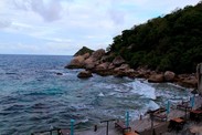 缇维曼度假村离码头大概5公里,修建在涛岛西北部的半山上,乘坐酒店免费接送的车上山,一路颠簸,也算过了一把越野车的瘾。穿过茂密的树丛,站在酒店的大堂,依山面海,无边美景令人陶醉。酒店的客房不多,每个都是独立的,隐藏在热带灌木中,根本不需要窗帘。每个客房都有面海的阳台,坐在松软的坐垫上,俯瞰水晶般清澈的海水,落日余晖醉人心脾。夜晚枕着海浪拍打岩石的声音入眠,清晨让海风自然而然把爱人从美梦中唤醒。而我,只需要侧过身来,在你的脸颊印上轻轻的一吻。