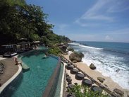坐落在小河谷+热带雨林中,拥有私人泳池。第一次在这么原始的丛林睡觉,非常恐怖!!晚上漆黑一片,只听见各种动物昆虫叫声。服务员会在8点左右送来早餐(需要前一晚在前台领表,勾选想吃的东西)。酒店内拥有世界排名前十的浪漫酒吧:Rock Bar(悬崖岩石酒吧),酒吧旁边就是Ocean View Pool (无边泳池),海浪打在岩石,会溅进泳池 ~