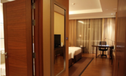 我们住的是Deluxe的房型,到房间我就觉得很喜欢,简洁明亮的空间和有质感的木质地板,饭店还提供免费的无线网(要记得跟柜台拿密码),大加分!有热水壶可以煮热水,这个设备对于习惯在起床后喝温水的我很重要,另外也附了两瓶免费的矿泉水。房间内的浴室也很棒,空间非常大,感觉也很新颖阿。备品。也有准备吹风机和化妆镜,设备很齐全喔。干湿分离的设计。早餐是在Grand Cafe吃的,餐点的选择还算多样化。空间非常明亮,气氛不错。