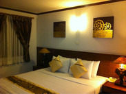 位置在塔佩门右侧,免费wifi 房间信号尚可;有小冰箱;每天两瓶免费水;无早;wifi密码需要在前台领取;没有什么特色的三星酒店,干净程度还算过的去,不可心的地方,是毛毯而不是被子。这个价格也没什么可挑剔的。洗澡水特别好,特别好。酒店不小,客人也很多,各国,各样都有。我们边上房间,就是欧洲人找泰妹那种,晚上**你懂得,某天早上我听到泰妹摔门跑掉了,原因不详。酒店有个泳池,看着绿绿的脏水,居然有老外天天泡在里面。 房间内部,算上宽敞明亮,没有异味;白天房间有阳光;晚上灯光也亮堂;空调基本不用开的,只在最热的中午加房间时,开一会儿,冲个澡后就根本不需要空调了;夜里会有狗叫声,8过我对动物叫声神马狗叫猫嚎的都有免疫力,不影响我。