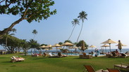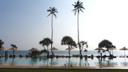 Koggala有一家叫Fortress的高档酒店,蚂蚁经过门口,问是否酒店,回答说是,并说欢迎进里面看看,有吃有喝有按摩,什么都有,我被盛情邀请,只好进去看看,那漂亮舒适就不用说了,远看,正面的游泳池跟后面的大海连在一起,视觉效果非常棒,其实游泳池比海面高出一大截,中间还隔着海堤,富裕的男男女女在躺椅上悠闲地晒太阳,松鼠在草地上游戏觅食,多么美好的下午啊!想知道酒店房间多少钱吗?250起价,美元,物品估计海景房大概还要加100。兜里不差钱的,别来美蕊沙,直接去Koggala的Fortress享受吧。