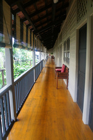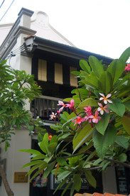 酒店位于乔治城的中心位置。从槟城机场坐401e公交车到终点站光大中心,步行15分钟左右可以到达酒店。酒店所在道路的中文名叫“南华医院街”,但南华医院不在这条街上。酒店旁边就是天后宫,离蓝屋的步行距离是5分钟。酒店附近有个红园red garden(蓝屋边上)是夜排档,营业时间晚上6点到半夜3点。 酒店早年是一间马房,上层住车夫,下层养马匹,当时槟城达官贵人出门习惯坐马车。4年前一位退休的银行家落叶归根,收购了这里并改造成有9间套房的酒店。酒店的门口有一个mini的Café,提供接待和餐饮。房间内绝大部家具都是古董真品,酒店还意外地将我们升级为king套房,挑高的楼层、迷人的帷幔…一切一切都非常完美,造成到了槟城后,除了购物,任何的景点、美食对于大家都缺少吸引力,在酒店的角落找个好位置来上网,变成槟城最大的乐趣。