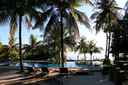到达Ocean View Dive Resort Tulamben的时候居然开始下雨了。于是我们无奈地住下、慢慢地午餐,希望下午天气能转好,但是雨却越来越大,没有停歇的意思,果然是雨季啊。。。。雨一直在下,我们就直接约了酒店的潜水店,开始了人生第一次的深潜体验,一次泳池训练+一次海中深潜共60美元/人,加一次深潜20美元,可能比外面街上的稍贵。 酒店共有九座别墅式房间,房间和卫生间都很宽敞,好像还在扩建。从游泳池边的小路就可以下到海滩上,离著名的“解放者号”非常近,潜水很方便,酒店的潜店态度和装备都很不错,体验潜水值得推荐! (文字和图片来自我的游记《行走在蓝天碧海之间-2014年春节巴厘岛+新加坡》)