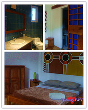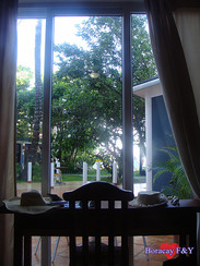 这个酒店真是给了我太多惊喜。可以说选择白沙滩附近的酒店是为了方便和热闹,适合短期旅行的游人,比如绝大部分中国人;而如果能够给自己放一个较长时间的假,想安静地在长滩岛住上一段日子,看看书、散散步、回想下自己的前半生,或者展望下自己的后半生,或者干脆什么都不想,就找一个清清静静的地方踏踏实实地呆上一阵子,那么请一定要在远离白沙滩的地方选择一家类似这样的酒店。 这家酒店应该是个西方老外开的,房客除我们之外也都是西方老外,整个酒店更像是他的家,一幢两层的小房子,几间客房。我们住在一楼,落地窗前摆着一张书案,一把木椅,极目远眺,是蔚蓝的海。拎着行李准备脱鞋进去的时候,碰到二楼的金发女孩出去,彼此微笑着打了个招呼。说是酒店其实不大适合,这里更像一个舒适的小旅馆。