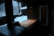 阳台外面是露天温泉,下面图中的盖子打开便是温泉,如果你愿意,可以这么亲密地接触魔鬼冬姑娘,冰火两重天。