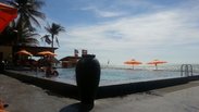 我们住的酒店,在美奈中央海滩的西部。可能因为前一晚是情人节,酒店住满,房间还未打扫出来。在大堂等待,保安很贴心地端了两杯冰冻的鲜榨果汁过来。大堂有两池锦鲤,池底是透明的,可以看到下层的SPA馆。 酒店海岸Bar的午餐。无边泳池周围一圈躺椅,鬼佬像煎蛋一面翻着面地晒日光浴。泳池旁可以直接走下沙滩,很多人在玩kite surfing。 因为原来房间的wifi不好,床是由两张拼成的,所以换了矮一层一张大双人床的房间。因为是周末,价格小涨。但是有个巨大的露台,房间也很宽敞,所以还是划算的。有私家露台,海风很强劲,椅子上都是一层细沙。