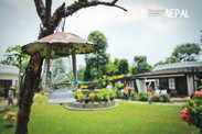 到博卡拉已经是下午3点多啦,我们住的酒店叫FISH TAIL LODGE(鱼尾山庄)。就像一个隐秘起来的山庄,需要坐船越过费瓦湖,才能到达那片桃花源。这里的客房就像连体别墅,每一栋都有一个小花园,还有四处可见的大红花,好美。