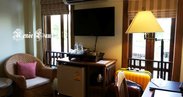 在2 Soi 3 Sriphoom Rd. T.Sripoom A.Maung, Old City,刚好在四方旧城里面,在Agoda上看图片的时候,因为拍摄的角度,我还以为这是一家颇具规模的酒店,所以当司机把我们带到门口时,我脑袋的印象和面前的景象完全划不上等号,以至于我完全不相信我们已经到了。除了跟想当然的印象不相符外,这家酒店的一切都让我们兴奋得睡不着!大堂麻雀虽小,但五脏俱全,一切都显得很整洁干净。 院子里琳琅满目地种满花草,桌椅摆放得很整齐很干净。原来酒店本来就不大,只有四层楼,大概十间客房,人本来就不多,再加上每位房客的作息时间都不一样,所以即便到了早上也很少碰见其他人。这让我们更加自在了。由于酒店坐落在Old City(旧城)里面,所以游泳池没有多壮观的花园景观,只有城市景观。