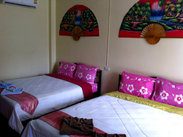 就在看起来高大洋的Kacha Resort旁边的小路进去,这条小路有几家都是走guest house路线的,所以价位还行100RMB/晚,蛮干净的,洗澡也挺方便,就是小了些,没有空调只有个风扇,wifi,浴巾倒是一应俱全,穷游的绝对可以选择它,要是怕热的还是过来问问别家有空调的吧……提醒大家洗漱用品还是自己带吧,主要是方便了自己