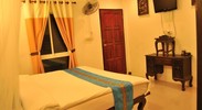 这家酒店设施一般,是此次行程中最不好的酒店,但是便宜啊,100人民币一晚含早餐(只有粥、水果、咖啡),有空调和WIFI,房子后面养着孔雀,自行车免费骑(不是太好骑),距离沙潘欣寺非常近,可以看日出(我们住的那天下雨),骑车到历史公园15分钟左右。老板一家人很好,晚上去车站接我们,走的时候又送到车站。素可泰酒店不是太多,还有两家GH不错就在历史公园门口,但是网上不能预定。