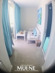 全景海景房,小伙伴对这家酒店非常的满意。地理位置在西区,离中区较远,但景色独享,安静和谐。 这家酒店要押护照的,不过想想放他们那反尔放心,这是我们住的越南酒店中唯一一家要押护照的。我们房间就在前台的旁边,我们房间在二楼,但从前台下来看似是在一楼,二楼以上都是海景房,一楼是基本看不到海景的,有遮挡。CLIFF有好几种房型,我们住的是全景海景房,然后还有靠海的独栋别墅、还有茅草屋,都是海景,但价格会更贵,因为都是独栋的。 酒店确实离中区有些远,就在酒店里吃了,晚上在出去。酒店的餐厅也有无敌海景,就是价格偏贵,这里的午餐不是很推荐,但春卷很好吃,应该说越南的春卷我都很爱,特别是他们的传统春卷。午餐就我们一桌在吃,哈哈。在美奈就是种享受,不拥挤,安静,美丽!人均350-400K的消费不算很便宜,午餐不怎么样,但酒店的早餐很是丰富!