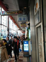 乘坐阪急电车京都线,到淡路站下,换乘阪急千里线,在天神桥筋六丁目下,直接转成地铁堺筋线,在日本桥站下,10号出口(黑门市场)出来,南行5分钟就到宾馆了。宾馆的名字叫菊荣,让我想起《爱情洗牌》里面谷原章介演的那位温柔的心理医生,也是叫菊荣~